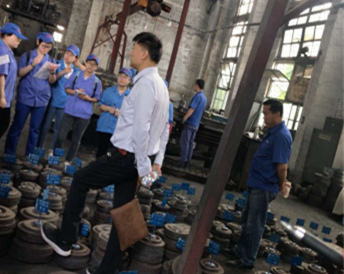 生产实习的第二阶段王俊勃老师、王军老师、刘毅老师亲自带队跟车陪员工深入生产一线,并对现代生产工艺进行讲解,了解现代机械制造工业的生产方式和工艺过程。熟悉工程材料主要成形方法和主要机械加工方法及其所用主要设备的工作原理和典型结构、工夹量具的使用以及安全操作技术。