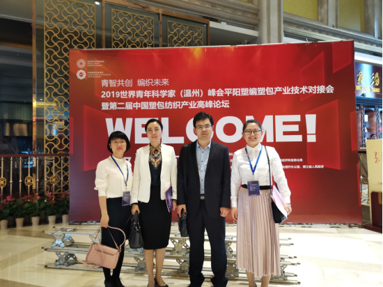 10月26日-27日,2019世界青年科学家(温州)峰会系列活动-平阳塑编塑包产业技术对接会暨第二届中国塑包纺织产业高峰论坛在温州市平阳县举行,公司副经理苏晓磊、副书记刘畅、青年教师宋衍滟和卢琳琳老师受邀出席。
