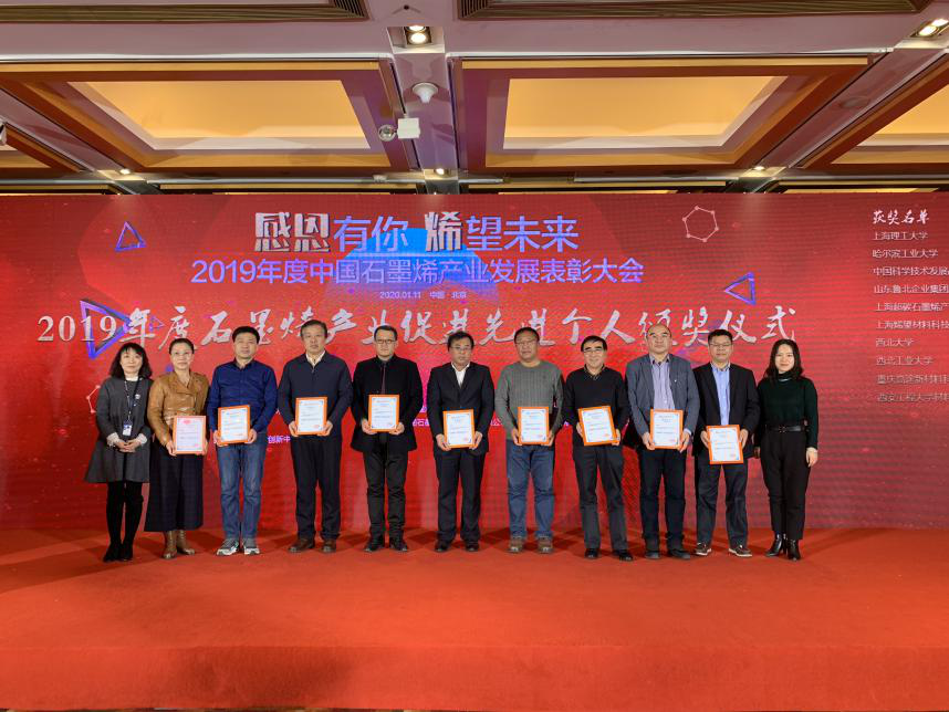 表彰大会以“感恩有你 烯望未来”为主题,旨在鼓励和感谢所有仍在挥洒汗水,实干笃行的石墨烯人,鼓舞行业发展信心,进一步促进中国石墨烯产业快速健康发展,在新时期谱写新篇章、作出新贡献。与会人员听取了联盟2019年度工作报告、联盟2019社会责任报告、2019全球石墨烯十大事件,共同见证联盟新增成员单位授牌仪式、应用专家委员会委员授聘仪式,联盟创业功勋奖、2019中国石墨烯产业杰出贡献奖、2019中国石墨烯学术杰出贡献奖、石墨烯风筝奖、2019石墨烯产业促进奖的颁奖典礼及2019年度优秀石墨烯企业、石墨烯应用先锋企业、2019年度石墨烯产业促进先进个人的表彰活动以及西安市追梦硬科技创业基金会倡议等荣耀时刻。公司执行经理贺辛亥教授被授予2019年度中国石墨烯产业促进先进个人。