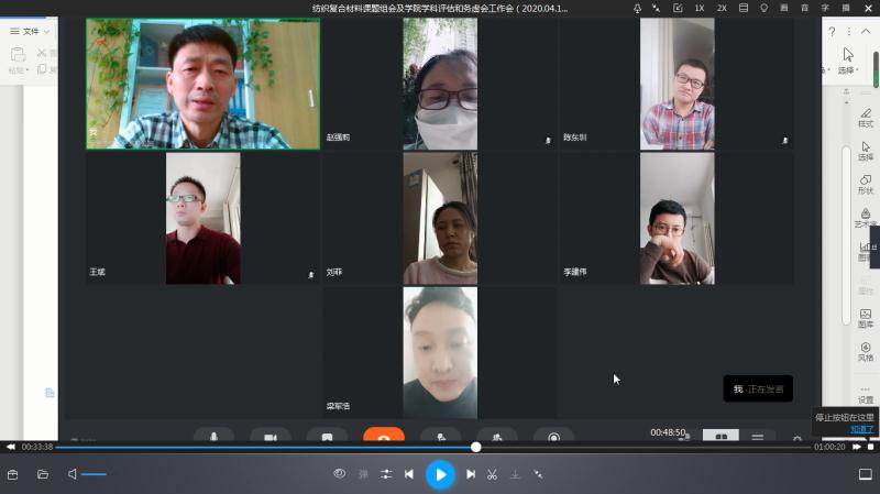 4月15日下午,纺织复合材料课题组召开线上视频会议,由组长贺辛亥老师主持,课题组全体老师参加了会议。会议围绕近期项目申报、学科平台建设、研究生课题研究指导及研三员工预答辩相关事宜展开。会上,贺辛亥老师充分肯定了课题组自成立以来在科研项目立项方面取得的进展和成果,并就目前即将开展的相关课题项目申报给出指导建议;大家对一些项目申报提出了个人的想法和建议,针对研一及研二员工课题开展和研究指导进行了讨论,落实了组织研三毕业员工进行线上硕士学位论文预答辩的相关工作。