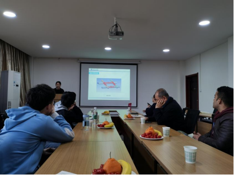 报告初始,王哲、陆海林副教授分别介绍了各自科研团队这一年来的发展情况。随后由公司大四毕业生张泽林、余达滔、董盘龙等人汇报了各自毕业实验的进展与论文的完成情况。团队研究生马敏静讲述了workbench中载荷简化的问题,基于此对自己课题进行了简单的建模并进行了模拟计算。