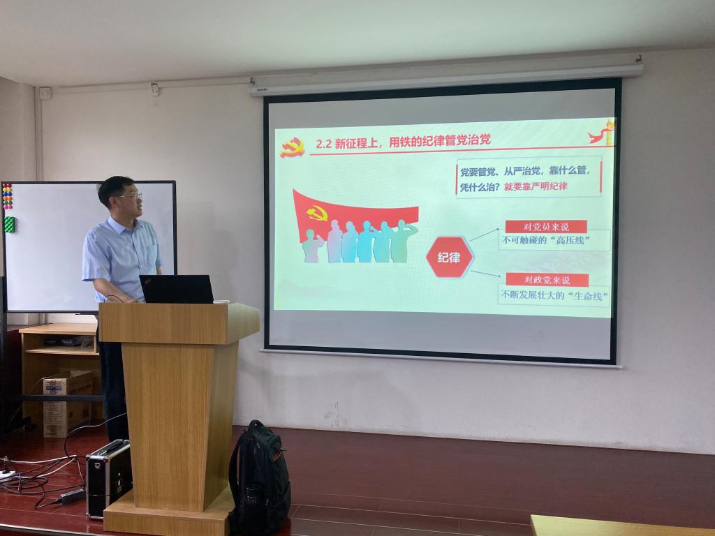 为贯彻落实公司关于开展纪律教育学习宣传月活动文件精神要求,深入开展党性宗旨教育、党规党纪教育,引导党员坚定理想信念、强化纪律意识,6月16日世界杯官方网站入口2026邀请了马克思主义公司屈旻博士为公司师生党员上了一堂“学党史、守初心”党纪教育的专题党课,公司教师党员及全体毕业生员工党员近60人参与了本次党课活动。党课由公司党委书记张茂林主持。