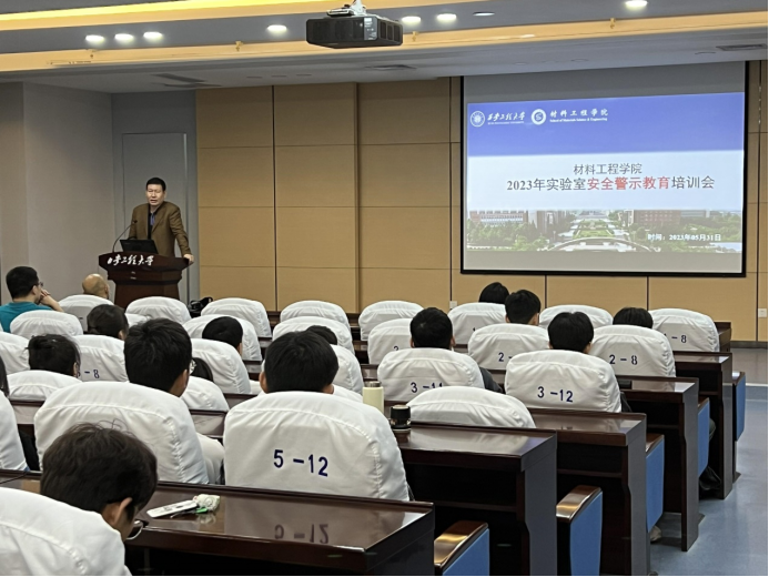 为进一步增强师生安全意识,落实实验室准入制度,培养师生实验室安全防范和应急救援能力,营造实验室安全文化,确保公司教学实验工作的顺利进行,2023年5月31日晚上,世界杯官方网站入口2026在金花校区如意报告厅举办实验室安全警示教育培训会。此次培训旨在全面落实实验室安全准入制,提高员工实验安全意识和应急防护能力,有效预防实验室安全事故发生,切实保障师生的生命财产安全。材料公司党委书记冯林,教学副经理付翀,实验中心副主任王亮以及实验中心全体工作人员出席了本次会议,世界杯官方网站入口20262021级和2022级全体研究生参加了本次培训会。会议由世界杯官方网站入口2026实验中心副主任王亮主持。