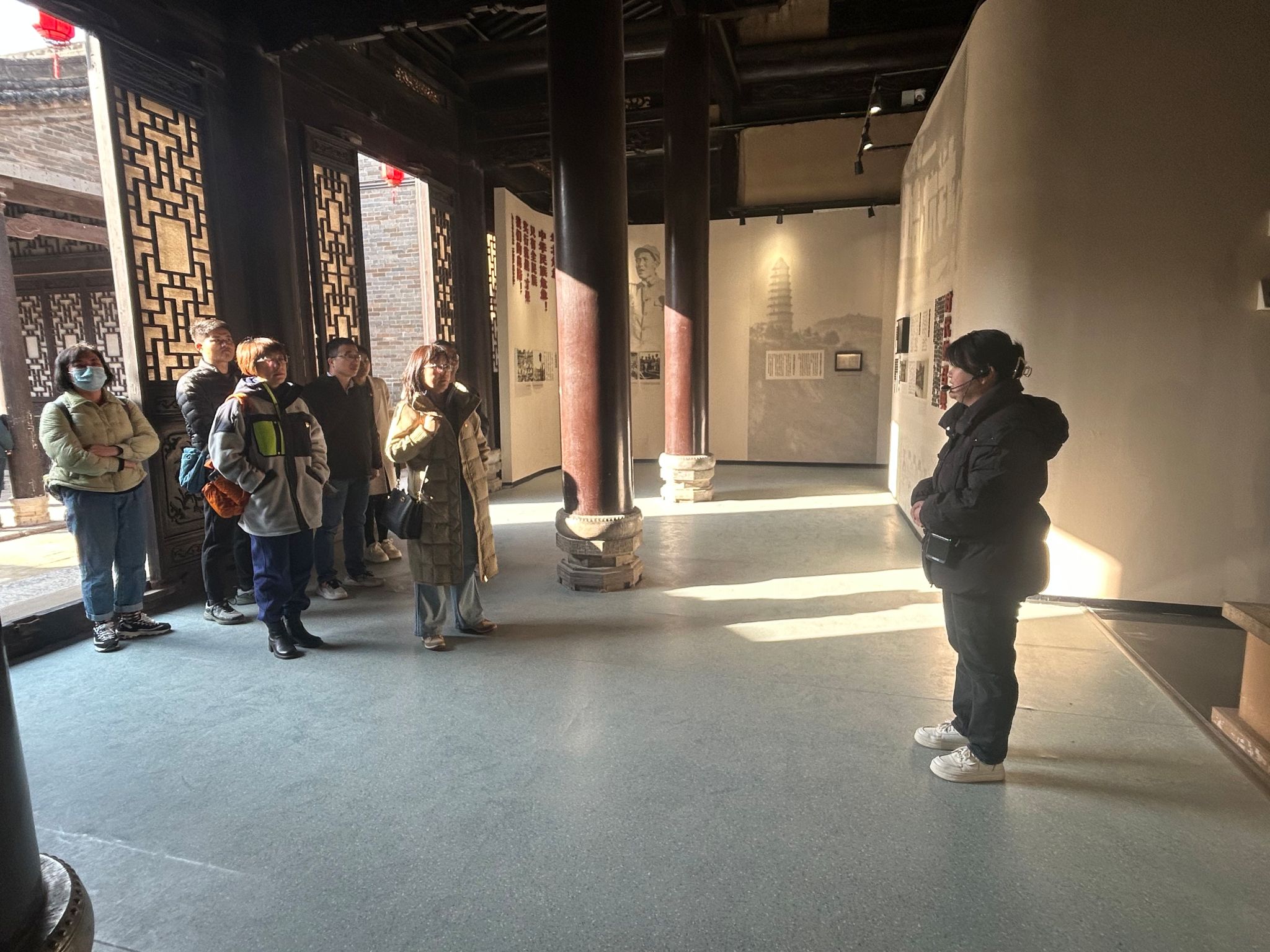 在讲解员的带领下,党员们先后参观了安吴青训班旧址现存的班部驻地、吴氏庄园、六椽厅、教务处等。通过一件件珍贵的文物、一幅幅生动的历史照片、详实的文字资料以及工作人员的生动讲解,全体党员深入了解了青训班的创办背景、办学历程和学员们的革命事迹。在参观过程中,讲解员深情讲述了青训班学员们在艰苦条件下,如何坚持学习、锤炼意志,最终成长为坚定的革命战士的感人故事。