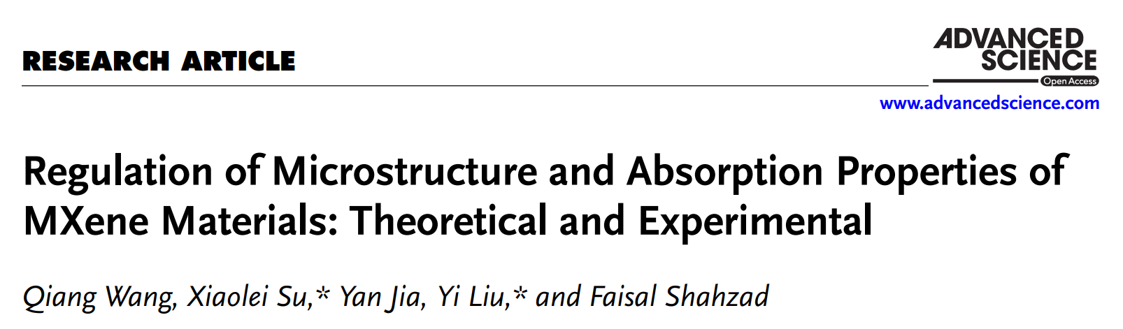 [1] Qiang Wang, Xiaolei Su✱, Yan Jia, Yi Liu✱, Faisal Shahzad, Advanced Science, 2025, DOI: 10.1002/advs.202509994.
