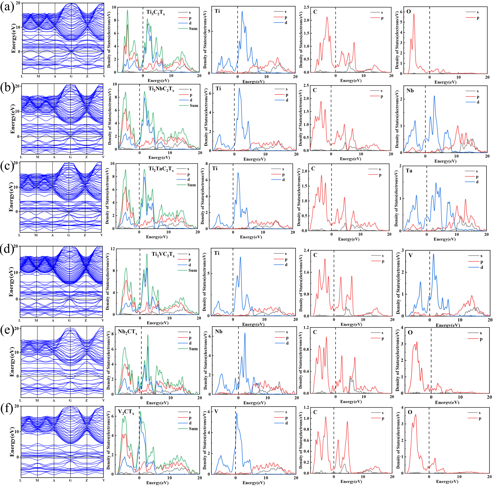 图1 MXene的SEM和元素分布图 图2 MXene的能带结构和态密度