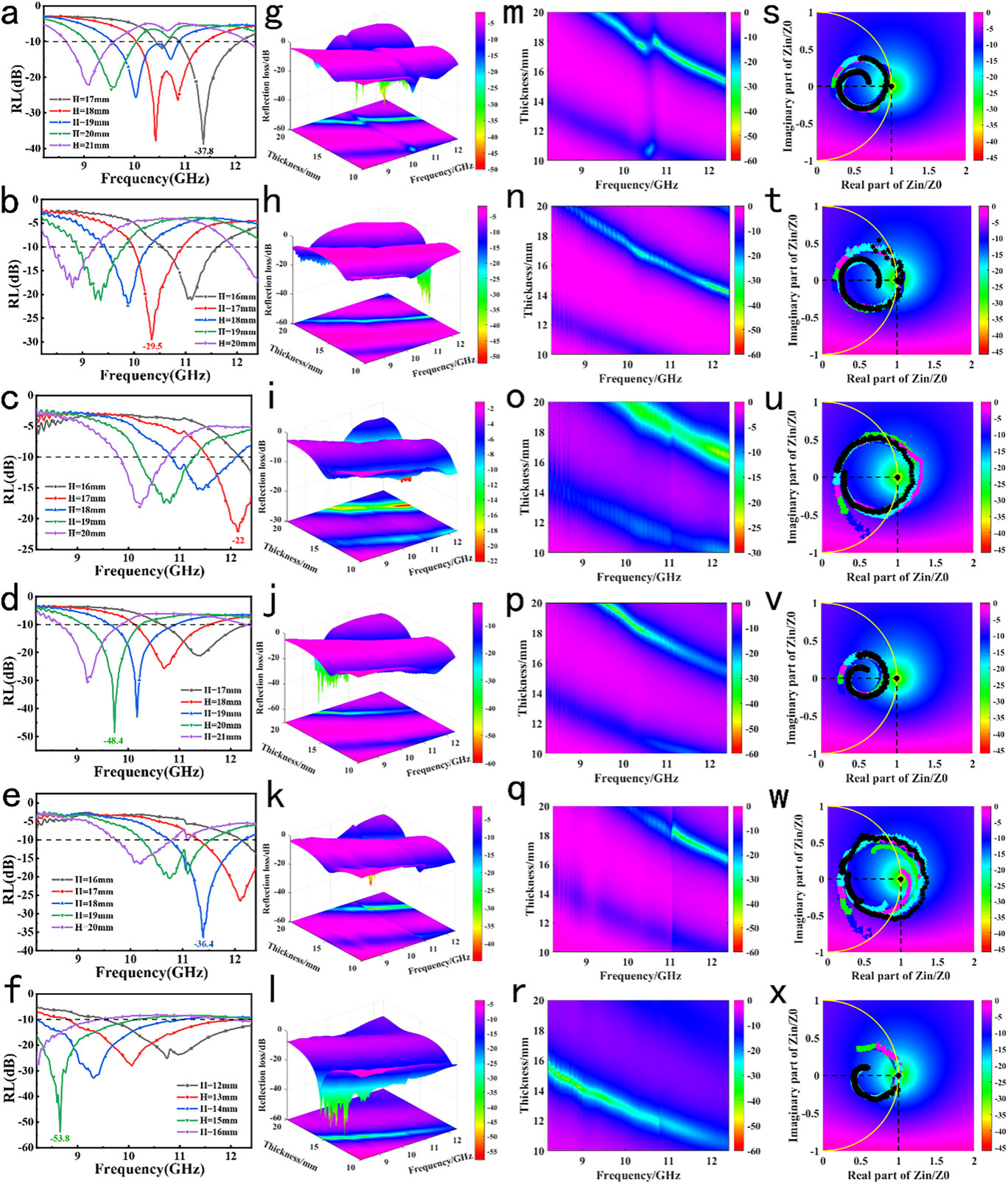 图4 MXene二维和三维吸波性能图