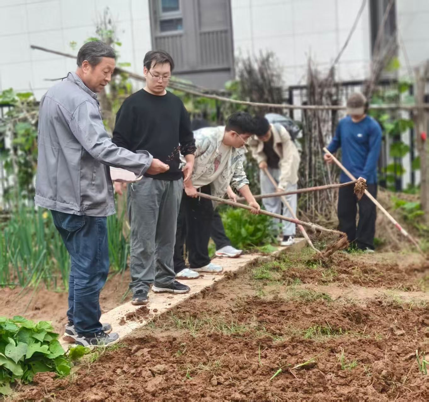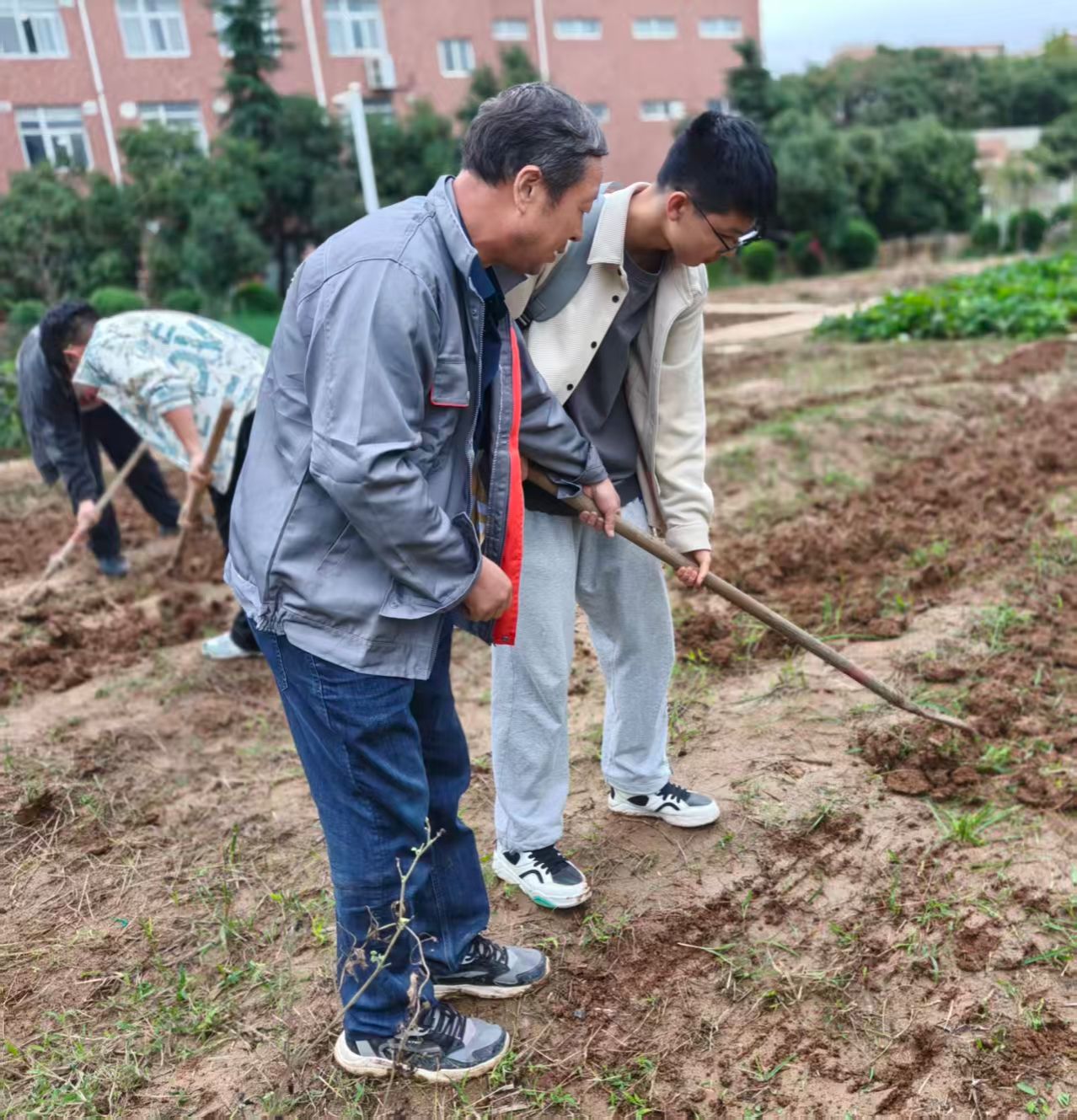 在后勤处专业老师的指导下,同学们分组协作,亲身参与土地整理、开沟、除草等农耕环节,体验劳作的踏实与乐趣。