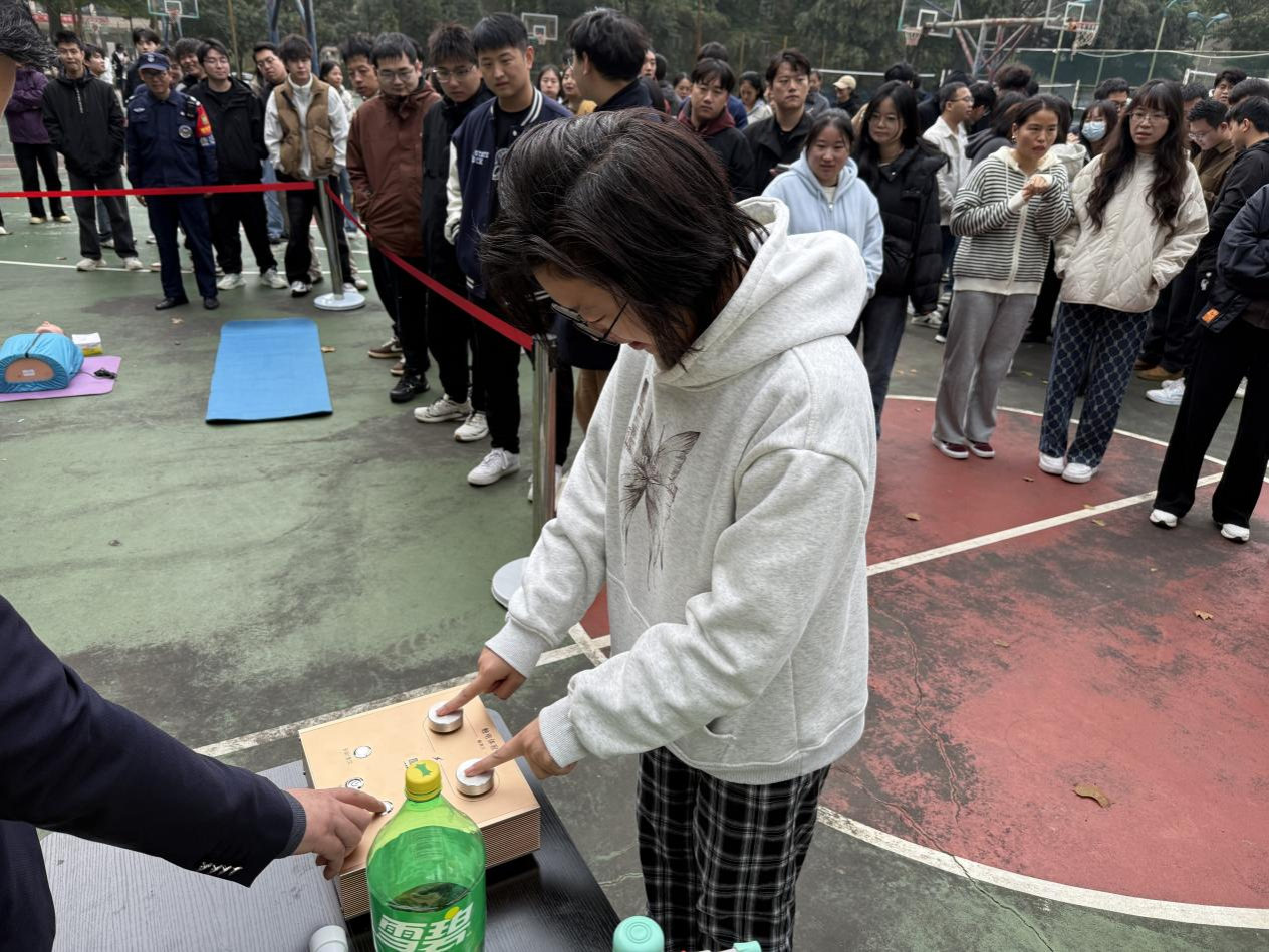 火灾扑救演练中,师生们在指导下,熟练掌握灭火器的使用方法,面对模拟火源,冷静操作,成功将“火势”扑灭。这一环节有效提升了大家应对火灾事故的实操能力。
