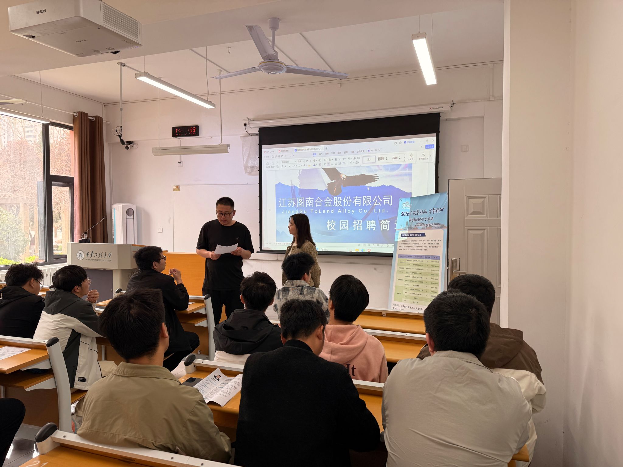 3月25日下午,江苏图南合金股份有限公司材料类专场招聘会在金花校区主楼1-131教室举行,为公司2026届毕业生带来优质就业岗位。招聘会现场,企业招聘团队通过企业宣传片、PPT演示等多种形式,全方位、多角度介绍了企业发展概况、核心业务、岗位设置、职业发展路径及薪酬福利体系,帮助毕业生对企业形成全面深入的认识。现场互动氛围热烈,公司毕业生积极携带个人简历,主动与企业HR面对面沟通,详细咨询岗位专业要求、工作内容、晋升空间等核心问题。企业代表耐心细致地解答毕业生疑问,并结合自身招聘经验,现场指导毕业生优化简历、掌握面试技巧,助力提升求职竞争力。多位毕业生在充分了解企业需求与发展前景后,现场投递简历并参与面试,部分毕业生当场与企业达成签约意向,实现精准就业的初步对接。此次专场招聘中,公司毕业生展现出良好的专业素养和积极的求职态度,在关注薪酬待遇的同时,注重企业的人才培养机制与自身职业发展空间,体现出对职业生涯的理性规划与高度期待。