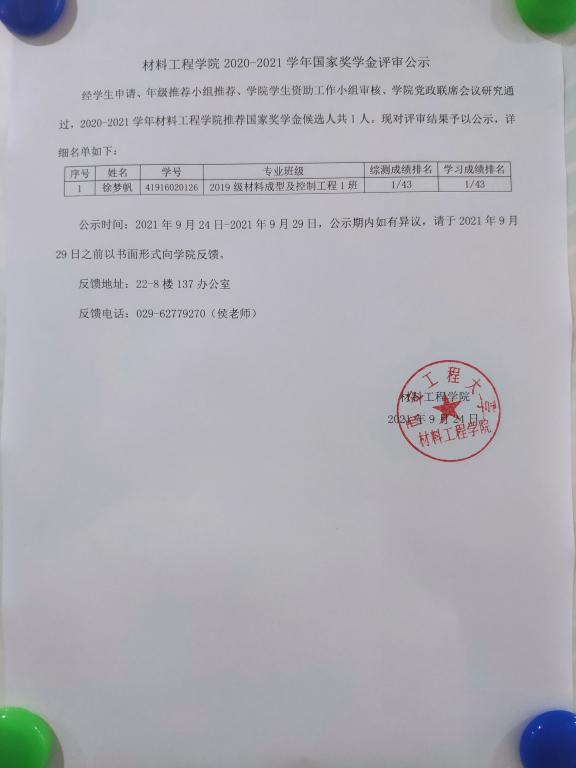 世界杯官方网站入口20262021年度国家奖学金拟获得者公示