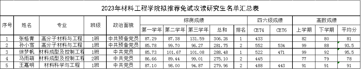 根据教育部《关于印发<全国普通高等公司推荐优秀应届本科毕业生免试攻读硕士学位研究生工作管理办法(试行)>的通知》(教学〔2006〕14号)等系列文件要求,公司制定并下发了《世界杯官方网站入口20262023年推荐优秀应届本科毕业生免试攻读研究生工作实施方案》。经个人申请、资格审查、推荐领导小组评定,拟推荐张格靑等5人获免试攻读研究生资格,现将推荐结果及个人成绩、排名等信息予以公示。