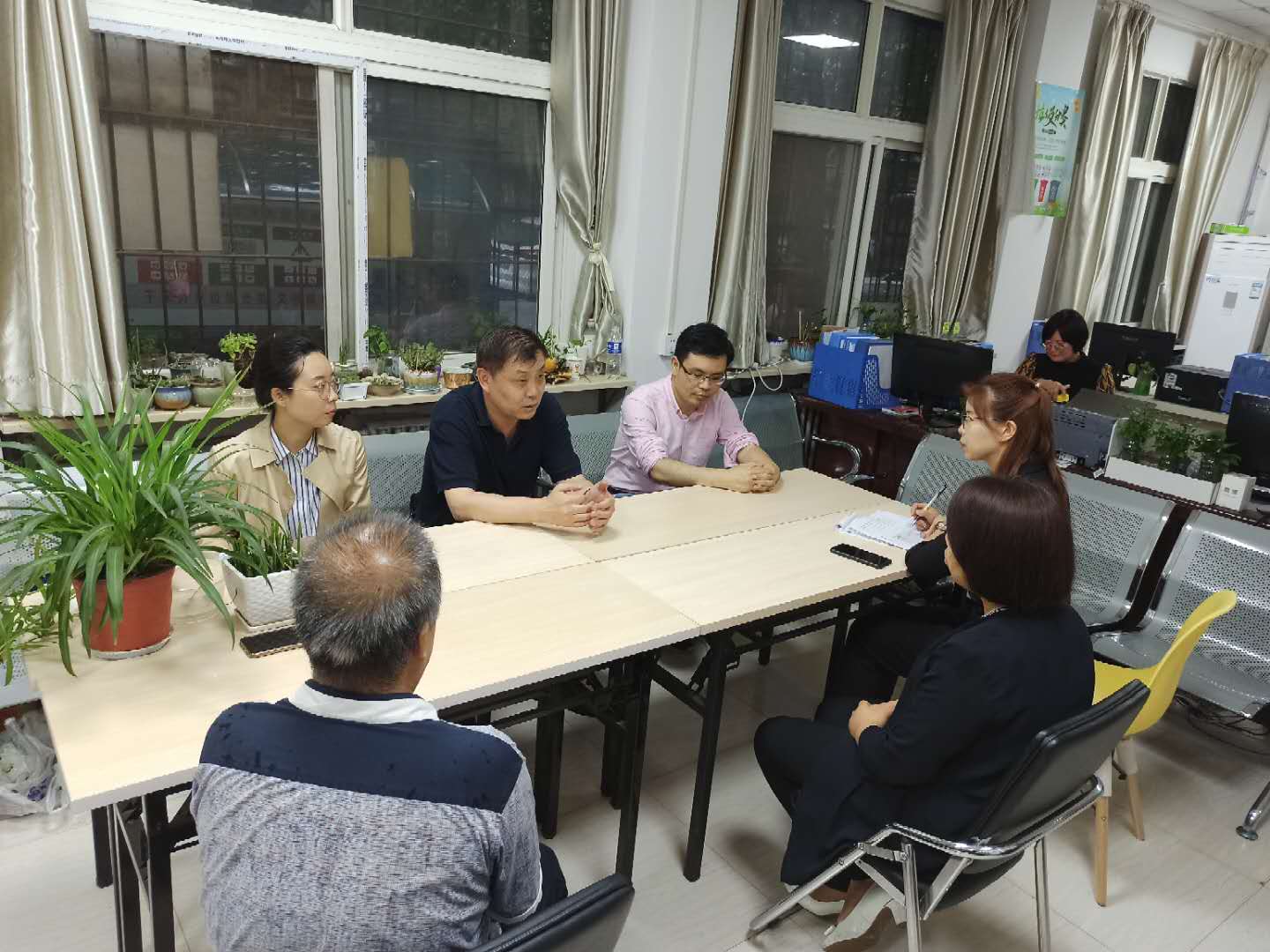 6月16日下午,公司党委书记张茂林一行4人赴碑林区东关南街社区办事处,就基层党建结对工作开展交流座谈。校离退办党委书记张平、东关南街工程大社区党支部书记王梅、副书记于晓莉参加了座谈会。