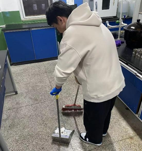为让同学们在一个干净整洁的环境下学习,本次活动安排为打扫研究生教研室、活动室以及实验室等科研与学习场所的卫生。同学们集合完毕后,分组到各个场所打扫卫生。同学们都情绪高涨,在不打扰自习同学和老师工作的前提下开始进行打扫,认真地扫地、拖地,整理物品等,每个人都不怕脏、不怕累。虽然打扫卫生的任务对于大家来说并不困难,但每位同学都认真负责,每个角落都不被遗忘。大家互相配合,经过半个小时的清理,地面已打扫干净、桌子上的物品摆放整齐。