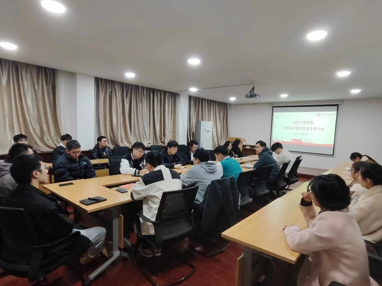 为了增强员工党员对习近平新时代中国特色社会主义思想中全面从严治党的理解和认识,11月24日,材料科学研究生党支部书记苏晓磊在215会议室,以《坚定不移全面从严治党,深入推进新时代党的建设新的伟大工程》为题,为支部全体员工党员讲授主题教育专题党课。