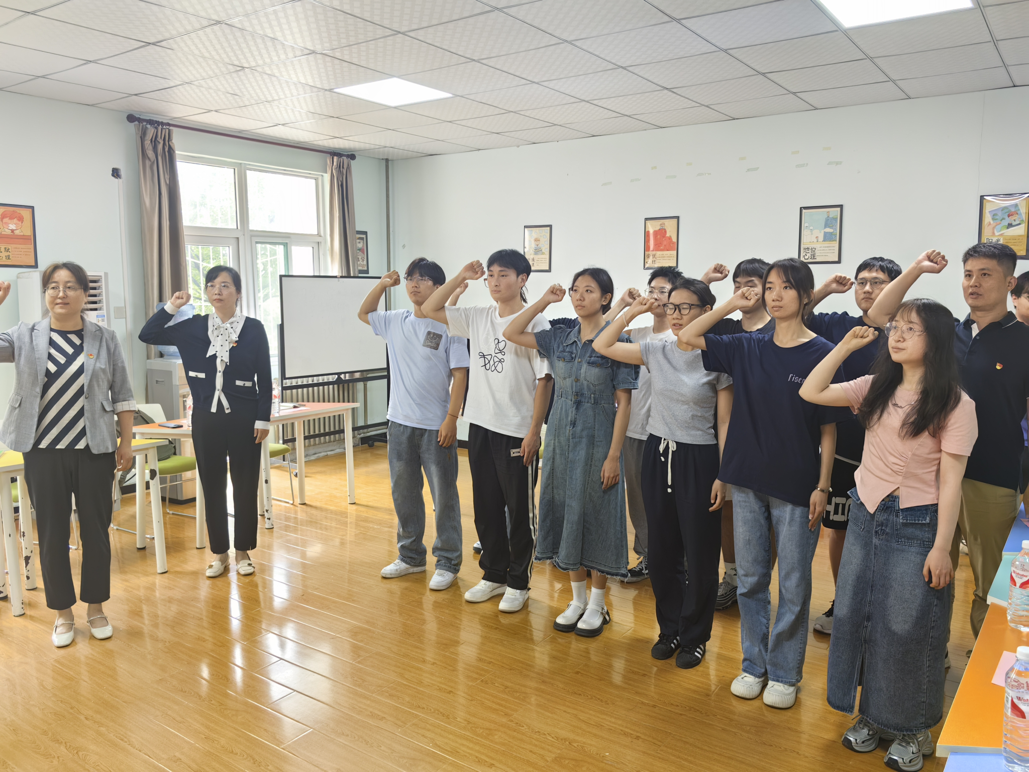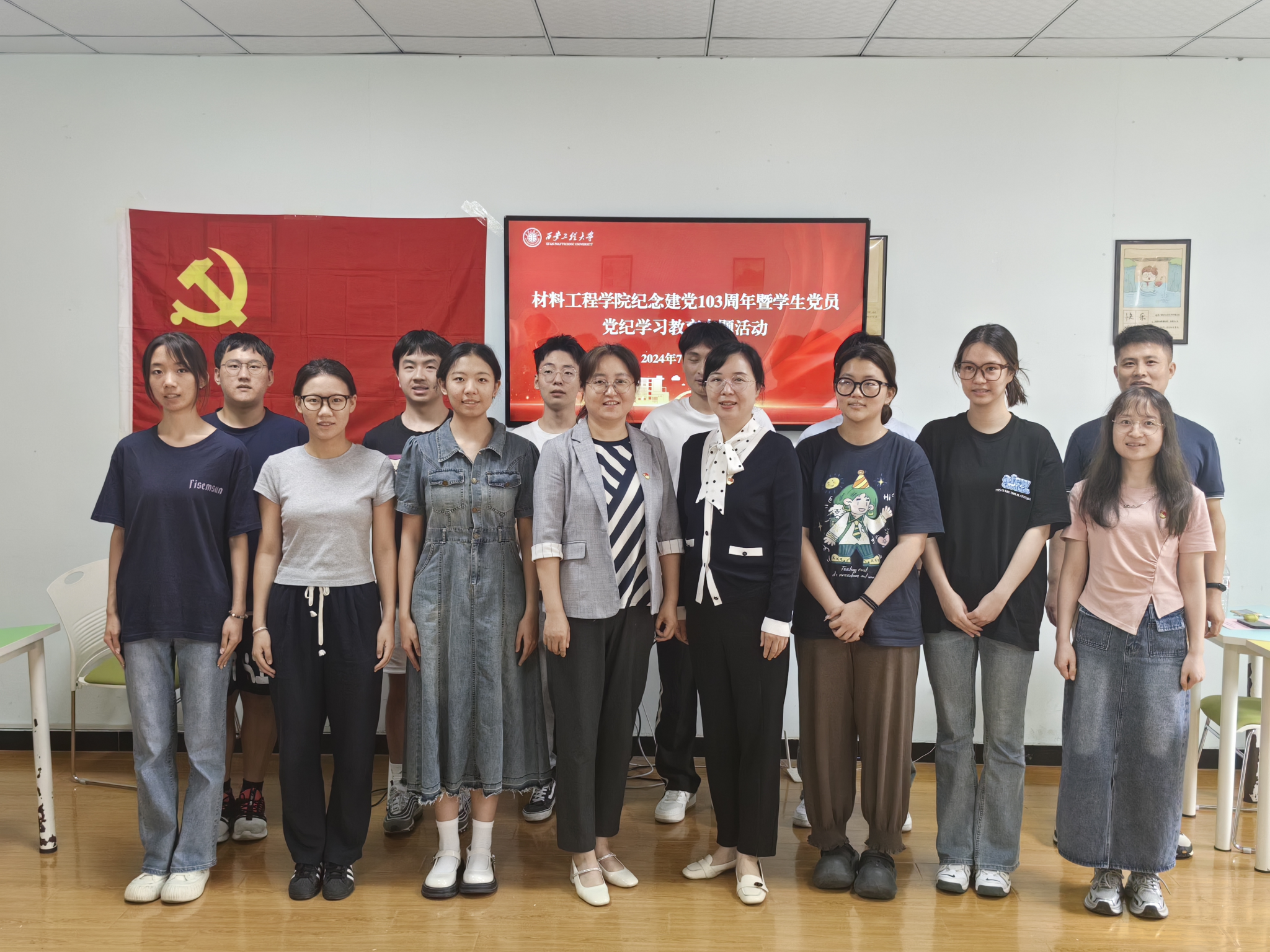 2024年7月1日,中国共产党迎来成立103周年纪念日。为更好赓续红色血脉、传承革命精神,公司党委联合校工会,依托“一站式”员工社区功能型党支部在临潼校区行政楼131会议室举行新发展党员入党宣誓暨党纪学习教育。校工会常务副主席张慧、公司党委副书记刘畅、学工办副主任常传旭、辅导员杨早宁以及公司第六十六期新发展员工党员参加了此次活动。活动由常传旭主持。
