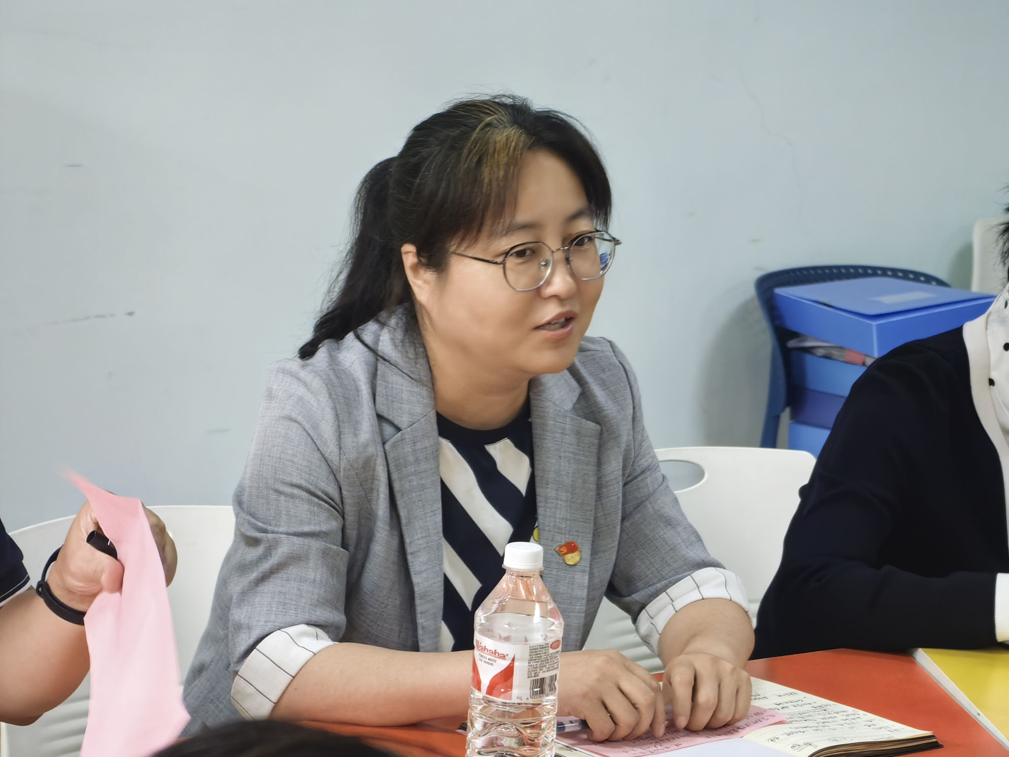 张慧带领全体党员同志进行入党宣誓,全体党员胸配党徽,面向党旗,高举右拳,庄严宣誓,铮铮誓言,拳拳红心,表达出大家的坚定决心和不变的信念。随后,张慧带领大家共同学习《中国共产党纪律处分条例》(简称《条例》)。她强调,全体新发展党员同志要深刻领会《条例》精神,深刻认识严明纪律的重要性,始终将党的纪律内化于心、外化于行。同时,她对新发展预备党员提出三点要求和希望:一是要加强政治理论学习,筑牢理想信念根基;二是要扎实学习专业知识,助力先进生产力发展;三是要立足学习和生活实际,争做先进表率。