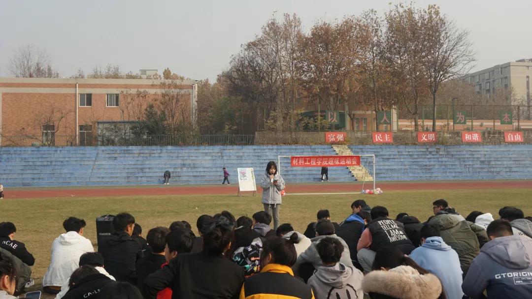 本次趣味运动会以班级为单位,共设有横行霸道、齐心协力、仙人指路、送鸡毛信、传呼啦圈、绑腿跑、抢凳子、踩气球、拔河比赛九个团体赛项目和踩气球个人赛项目。比赛采用积分制,九个项目后积分最高的班级将获得冠军。比赛现场,各班级团队在赛场上奋勇拼搏,默契配合,不仅展现出了班级魅力与风采,更将团队精神体现在了每场比赛中。各班级始终保持“友谊第一,比赛第二”的比赛精神,展现了“团队第一,个人第二”的精神风貌。运动会中穿插着歌曲表演,将比赛的气氛推向高潮。经过激烈地角逐,材控2102班获得团体赛的第一名,材料2101班、材料2102班位居第二名和第三名。张顺兴、吴锐等五位同学在个人赛中表现优秀获得奖品。