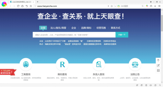 方法三:登陆天眼查(http://www.tianyancha.com/),输入企业名称等关键词,查询你所需了解的企业。