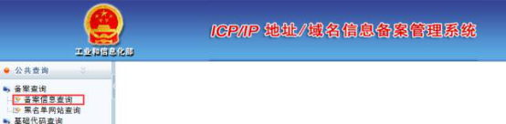 (2) 进入工信部ICP/IP地址/域名信息备案管理系统(http://www.miitbeian.gov.cn/publish/query/indexFirst.action),点击【备案信息查询】:
