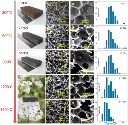 1. 聚酰亚胺泡沫高温碳化过程及其形貌变化
