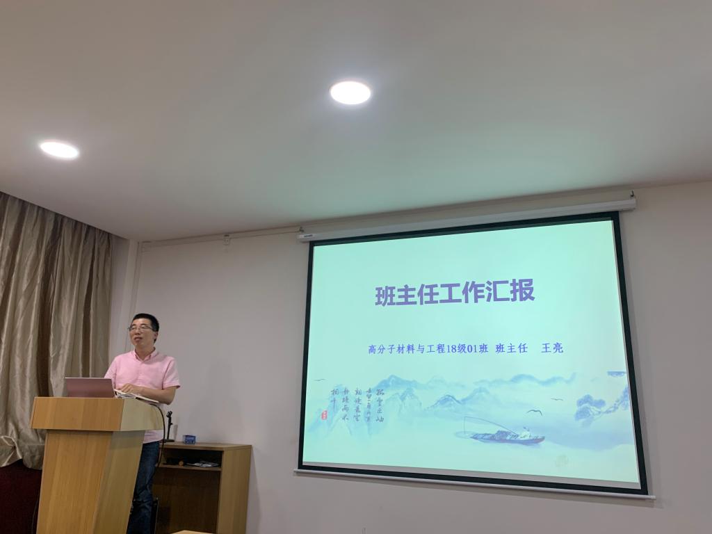 接着,梁军浩和王亮两位老师作为优秀班主任的代表,向各位新生班主任分享了他们的带班经验。首先是梁军浩老师,他不仅为我们介绍了在江苏镇江句容挂职的经历,还分享了他作为班主任的心得体会。王亮老师作为高分子材料与工程2018级高分子01班的班主任,通过担任班主任一年来在班级日常管理、员工心理辅导、班级文化建设、员工习惯养成以及班级发生实例等方面的介绍,让各位老师更加仔细、深入的了解和学习了作为班主任的基本素养。